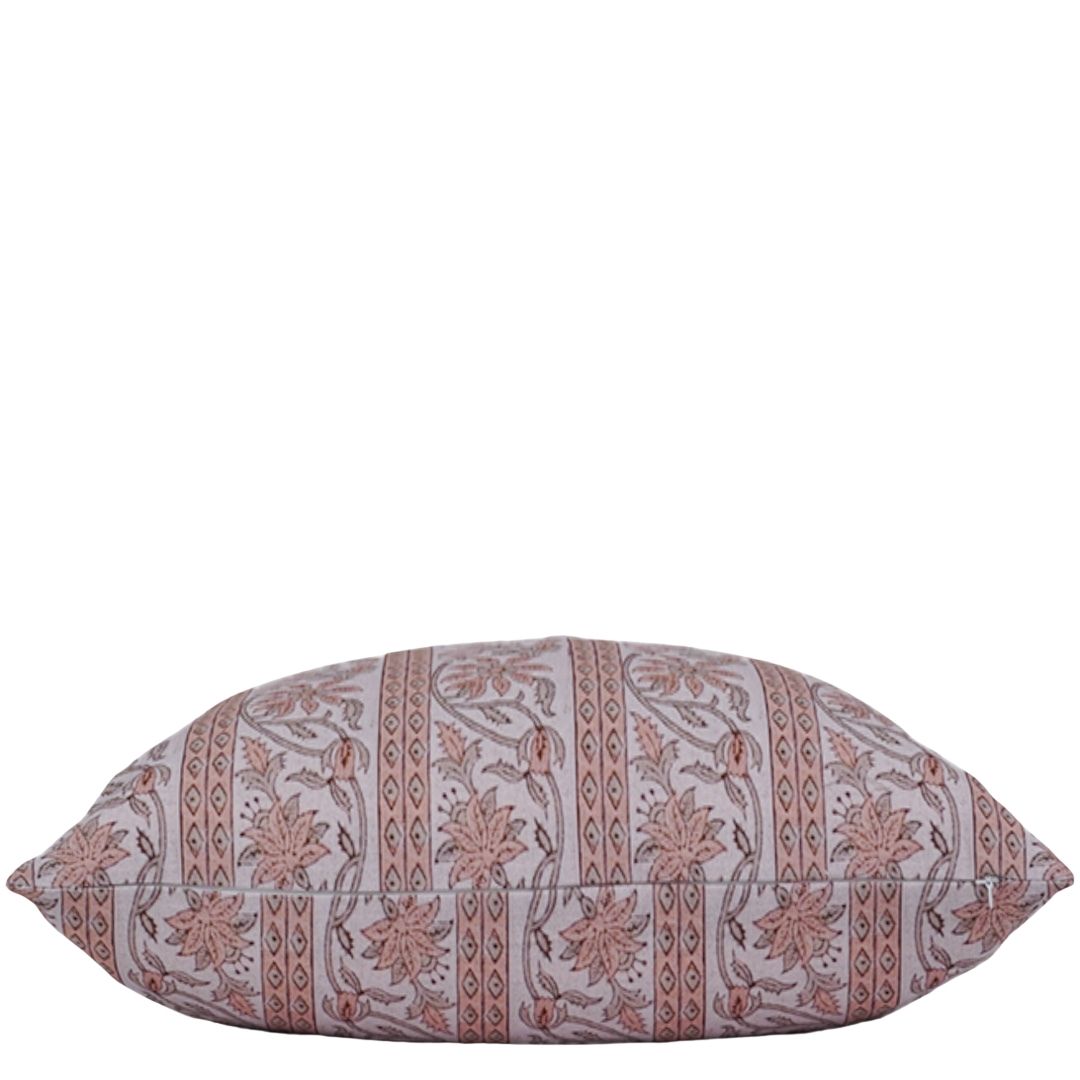Brighten your space with the Marigold Pillow, crafted from natural cotton fabric that offers a smooth, comfortable texture and lasting durability. This eye-catching design features vertical stripes adorned with marigold flowers in warm shades of orange, green, and beige, accented by delicate diamond motifs. The vibrant floral pattern adds a cheerful, botanical touch to any room. Perfect for layering or as a standalone accent, the Marigold Pillow brings a fresh and inviting feel to your home décor.