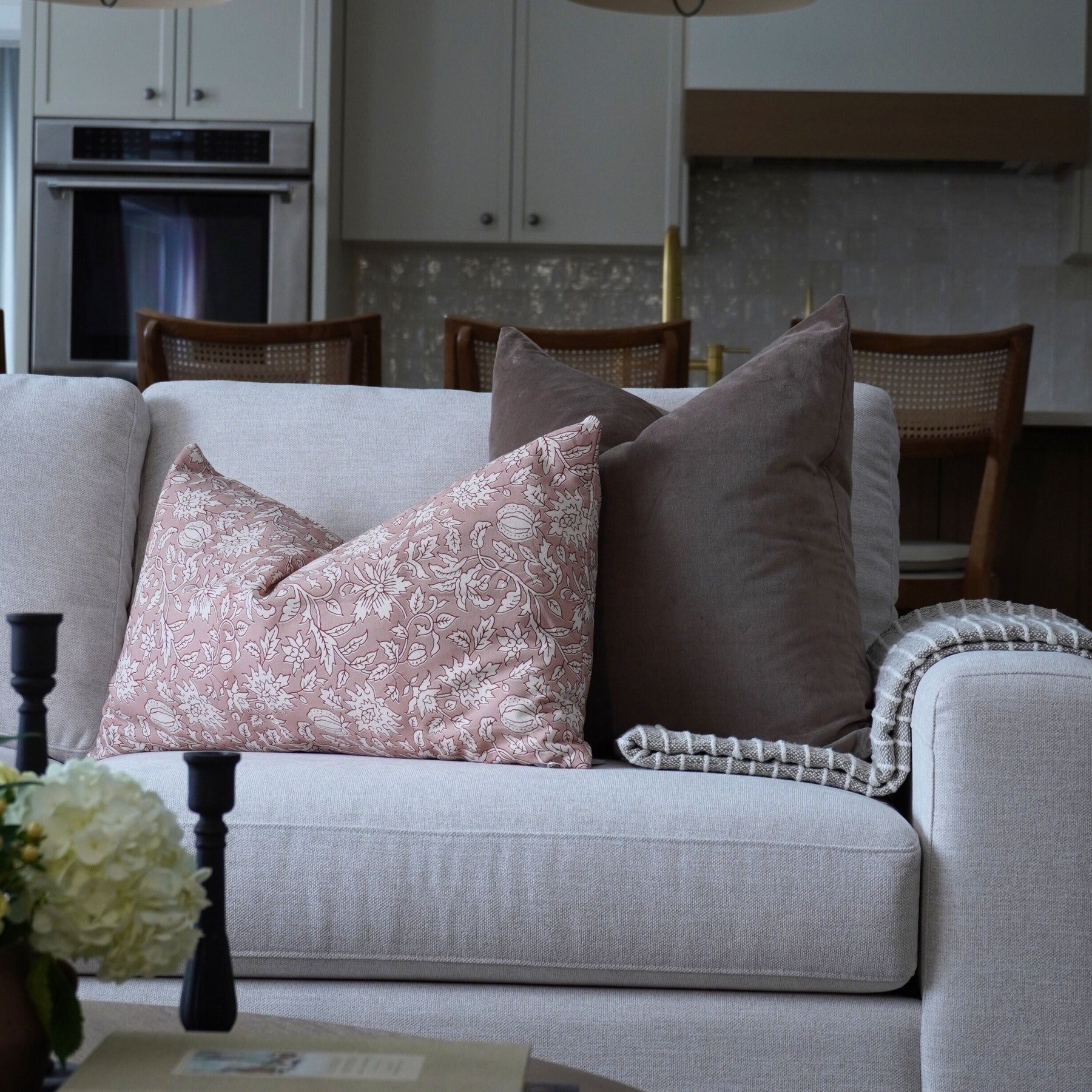 Elevate your pillow styling with the Sierra Pillow, a beautifully screen-printed 16x26 piece featuring soft rose tonality that adds warmth and sophistication to any vignette. The discreet invisible zipper allows for effortless cover changes, giving you flexibility to refresh your look seasonally. This versatile size and romantic color palette make it the perfect anchor piece for creating curated, gallery-worthy arrangements on sofas and beds.